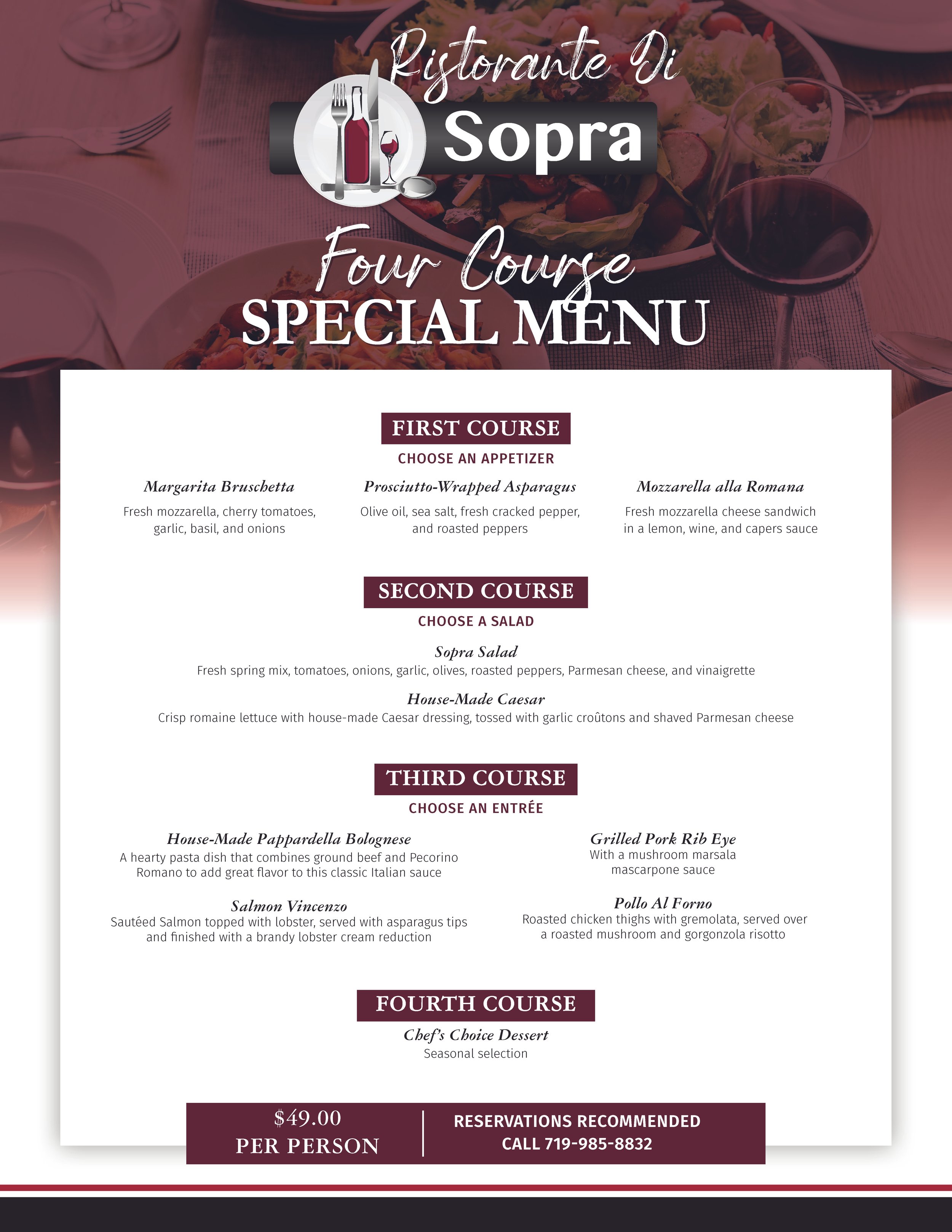 Enjoy our Pre Fixe Menu through April 30th
